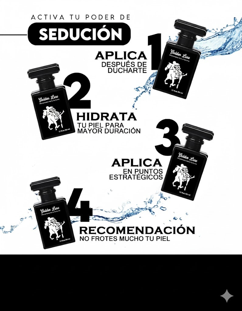 "Golden Lure despierta atracción natural en segundos. Un aroma cautivador que te hace destacar, atraer miradas y dejar huella donde vayas."