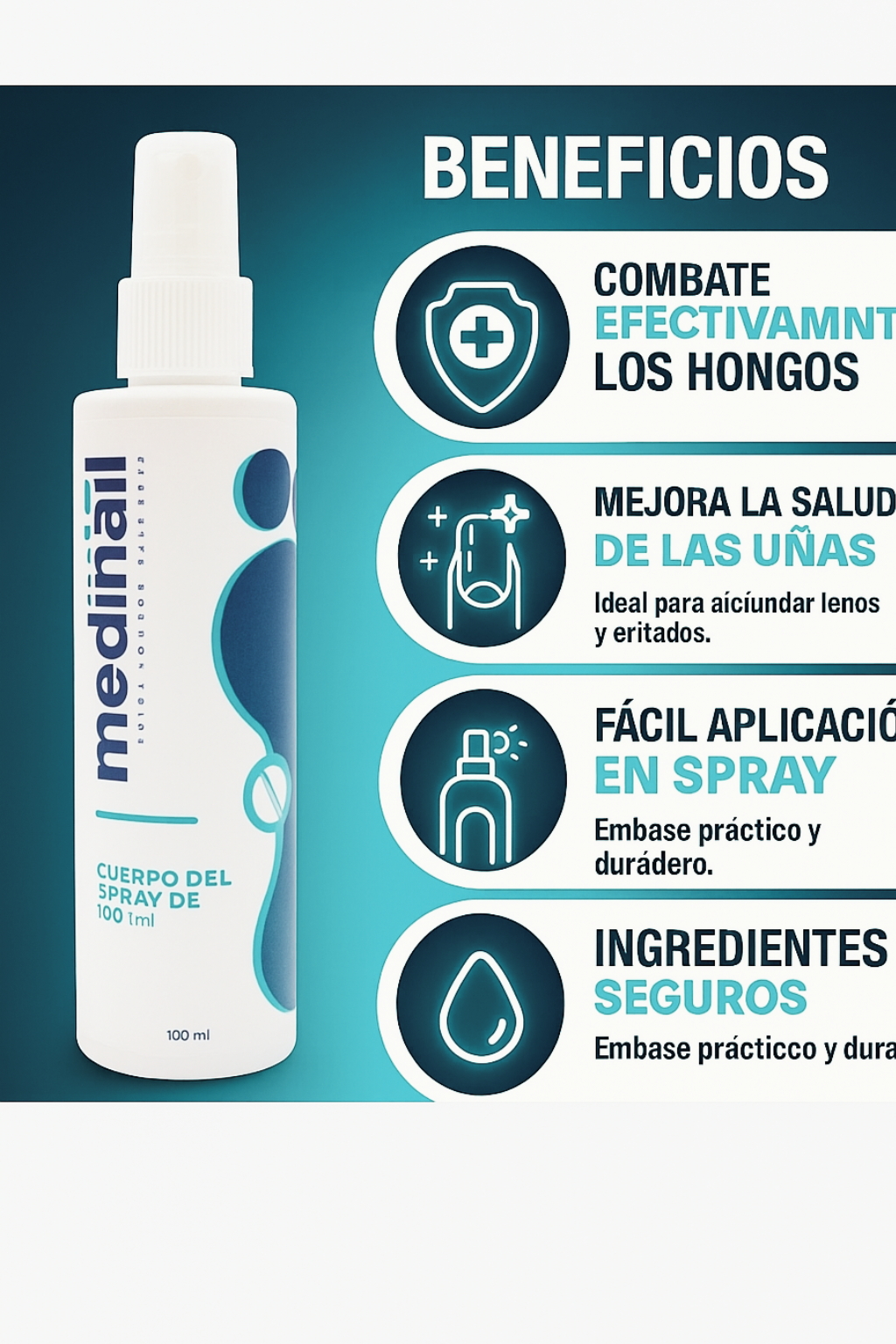 “Elimina los hongos rápido y luce una piel sana con Medinail Spray.”