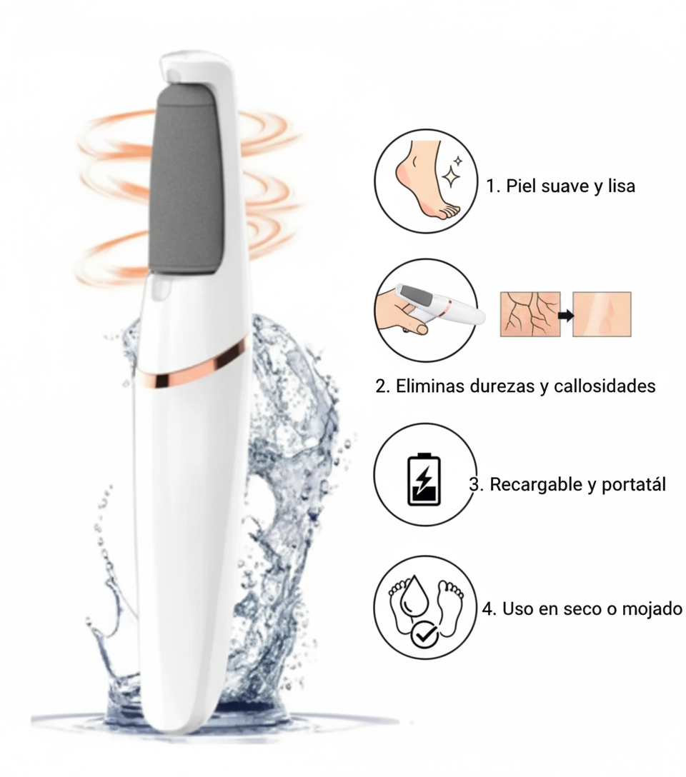 Transforma tus pies en minutos. Elimina callos y durezas al instante y disfruta de una suavidad profesional sin salir de casa.”